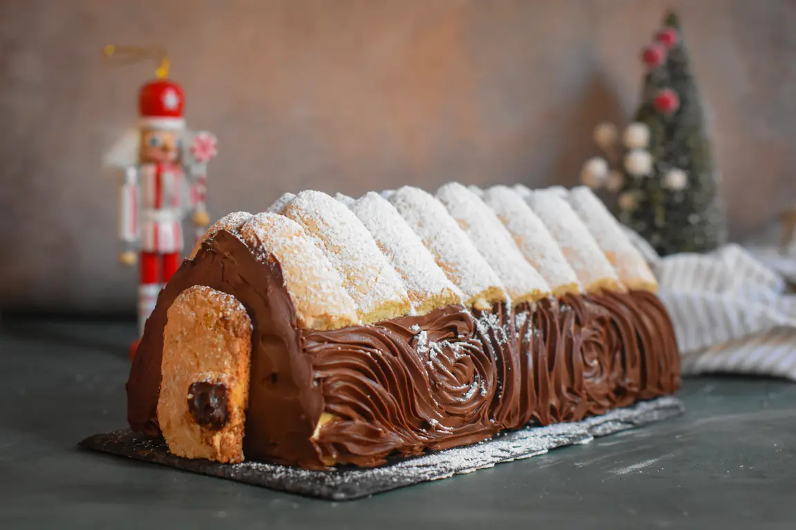 Bûche tiramisu façon chalet de Noël