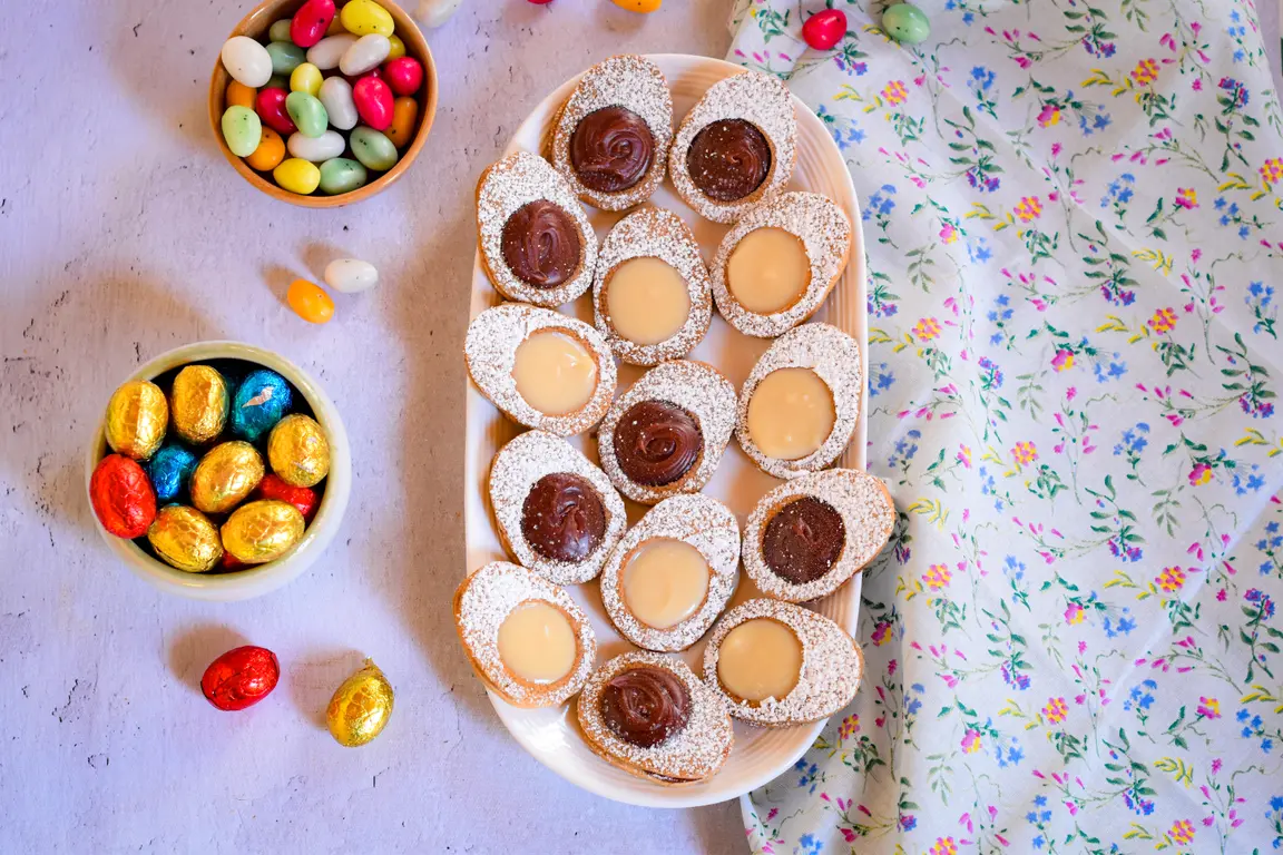 当然,您可以使用其他灵感(百香果和草莓)或您选择的巧克力来制作甘纳许;对于更“真实”的版本,百香果灵感、柚子灵感和杜尔塞的视觉效果最接近鸡蛋。
